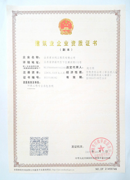 近日,經(jīng)濟南市行政審批服務局審核批準,公司成功取得了環(huán)保工程專業(yè)承包叁級資質(zhì)。 資質(zhì)是公司參與環(huán)保領域市場競爭的“準入證”,直接影響公司開拓環(huán)保領域業(yè)務。環(huán)保工程專業(yè)承包叁級資質(zhì)可承擔污染修復工程、生 ...