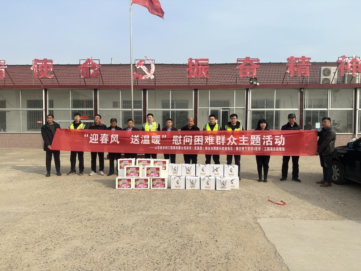 2月22日,第一工程公司黨支部書記蘇東虎一行等人在莒縣劉官莊鎮(zhèn)黨委委員、副鎮(zhèn)長蔣為光陪同下,到公司莒縣項(xiàng)目部駐地柳河村、前云村開展“迎春風(fēng)、送溫暖”走訪慰問活動。